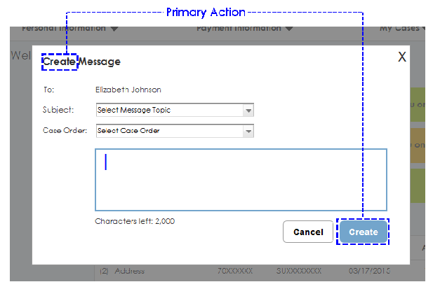 - Buttons should always be labeled with the “verb” or the action of the statement.